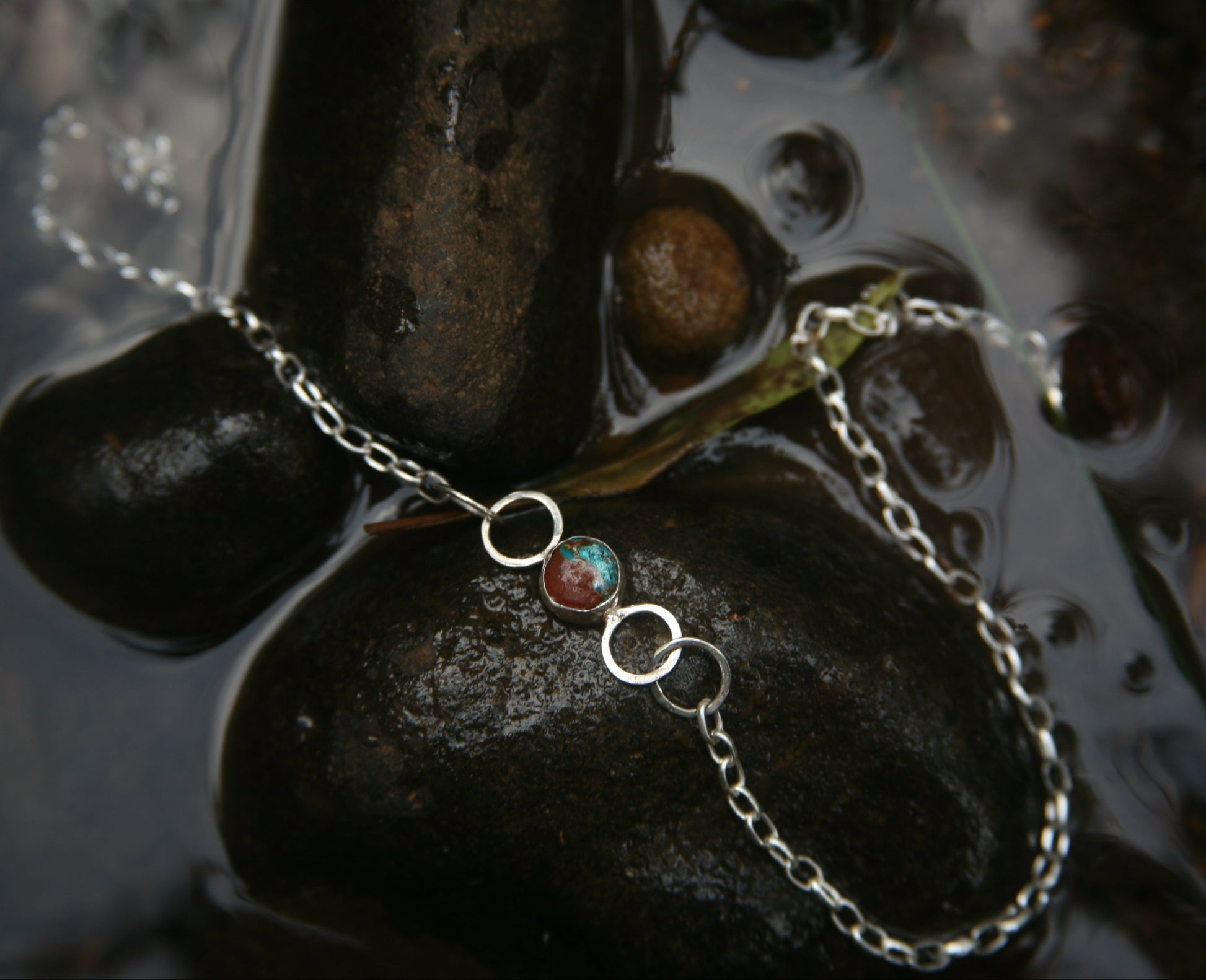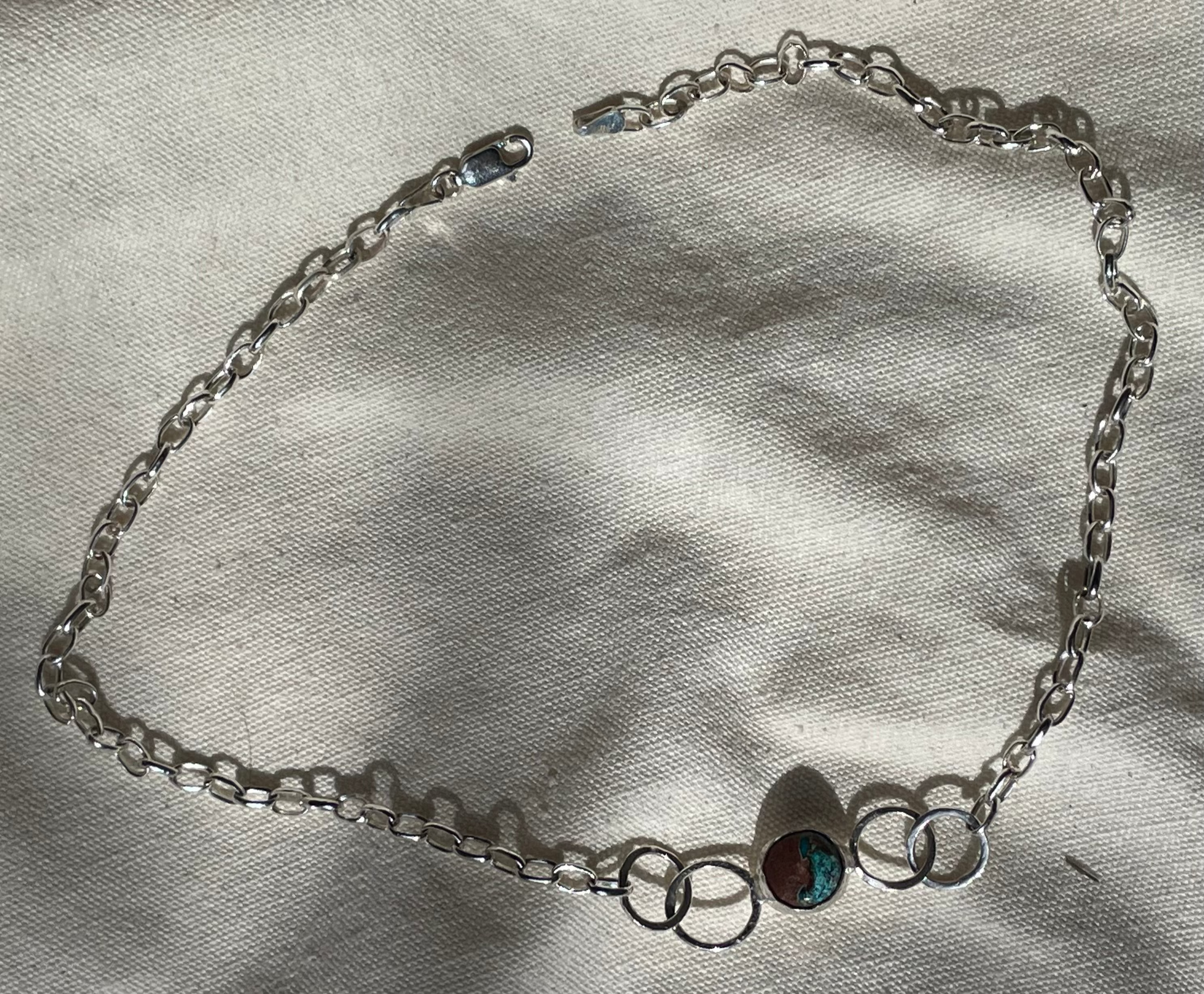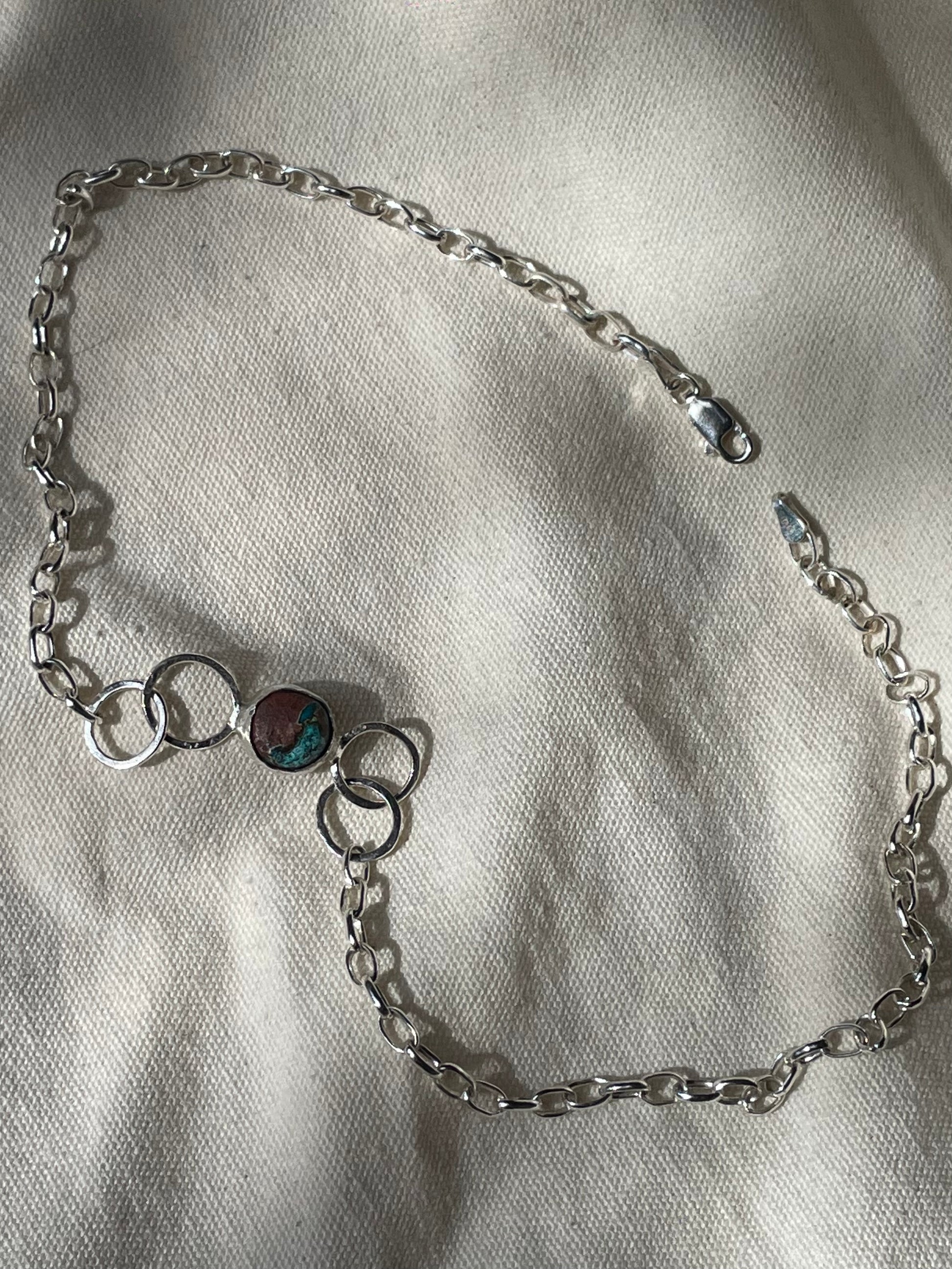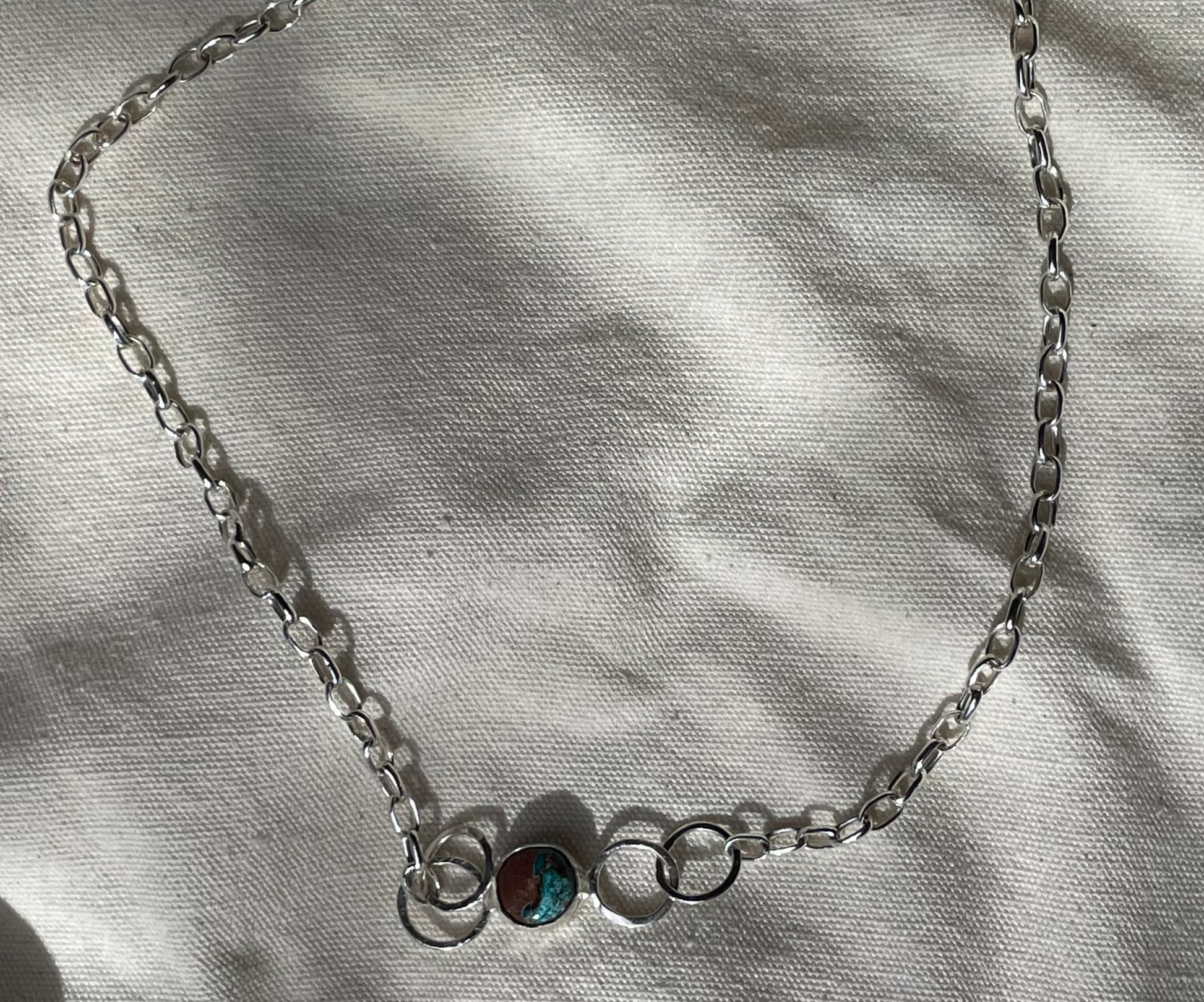 925 sterling silver chain with a centre piece stone, Shuttuckite azurite freeform