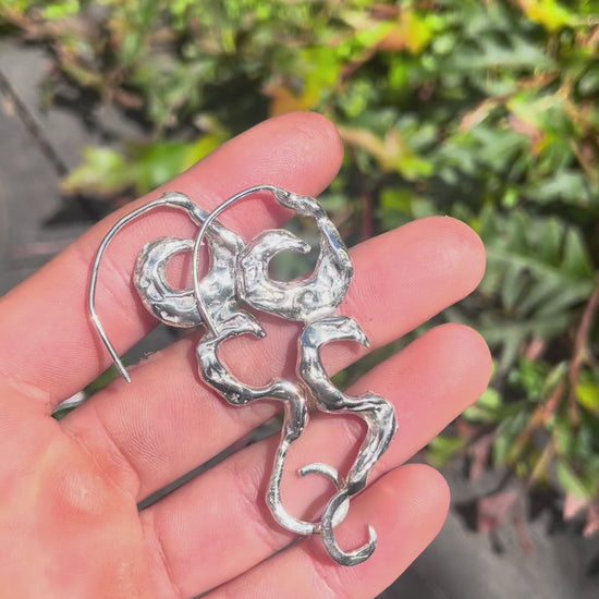 These chunky beauties are everything you’ve ever dreamed of. Cast in 925 sterling silver, they take the form of flowing spiral dangle earrings—symbols of movement, growth, and timeless energy. Sculptural yet refined, they sway with a quiet grace, catching the light and adding a touch of grounded magic to any moment.