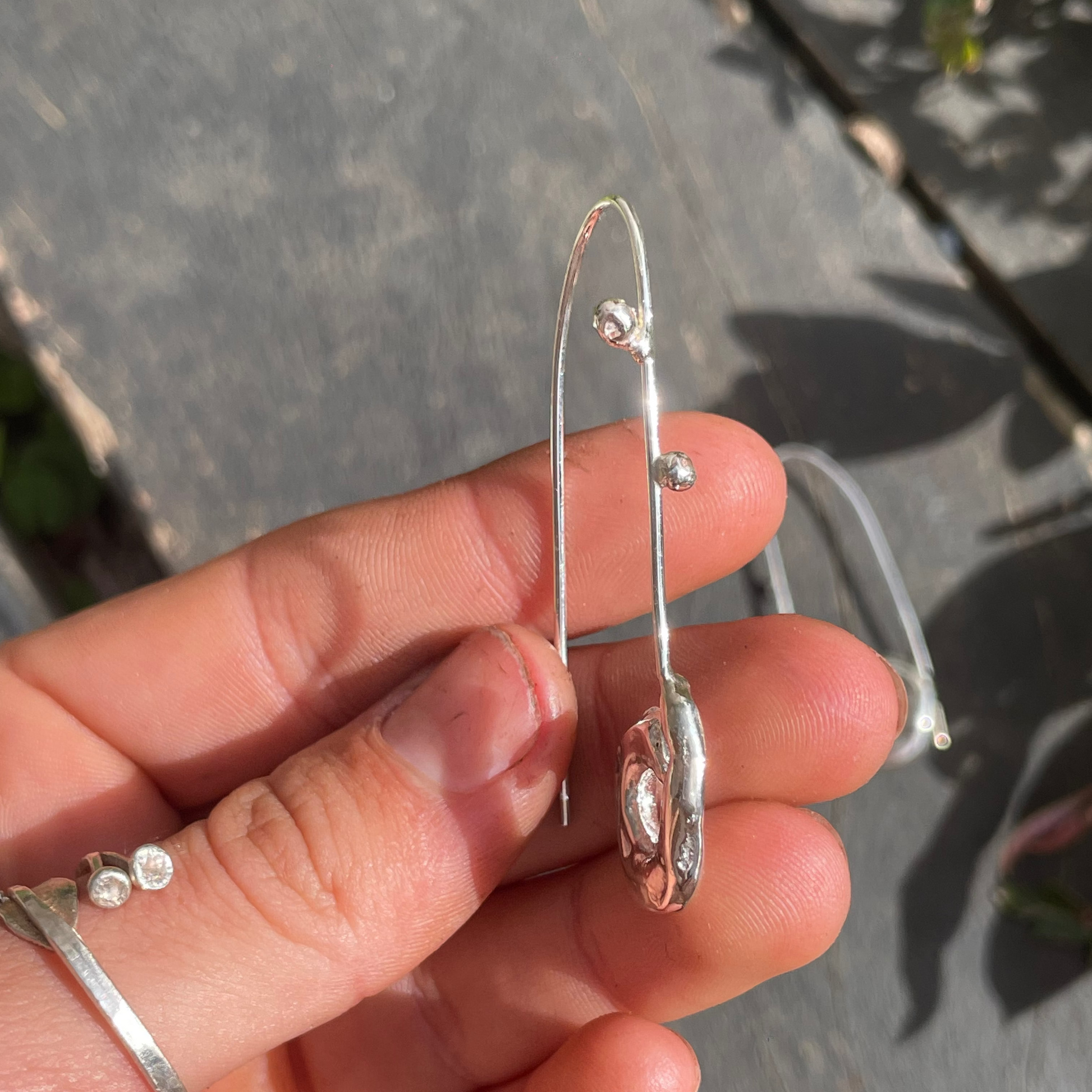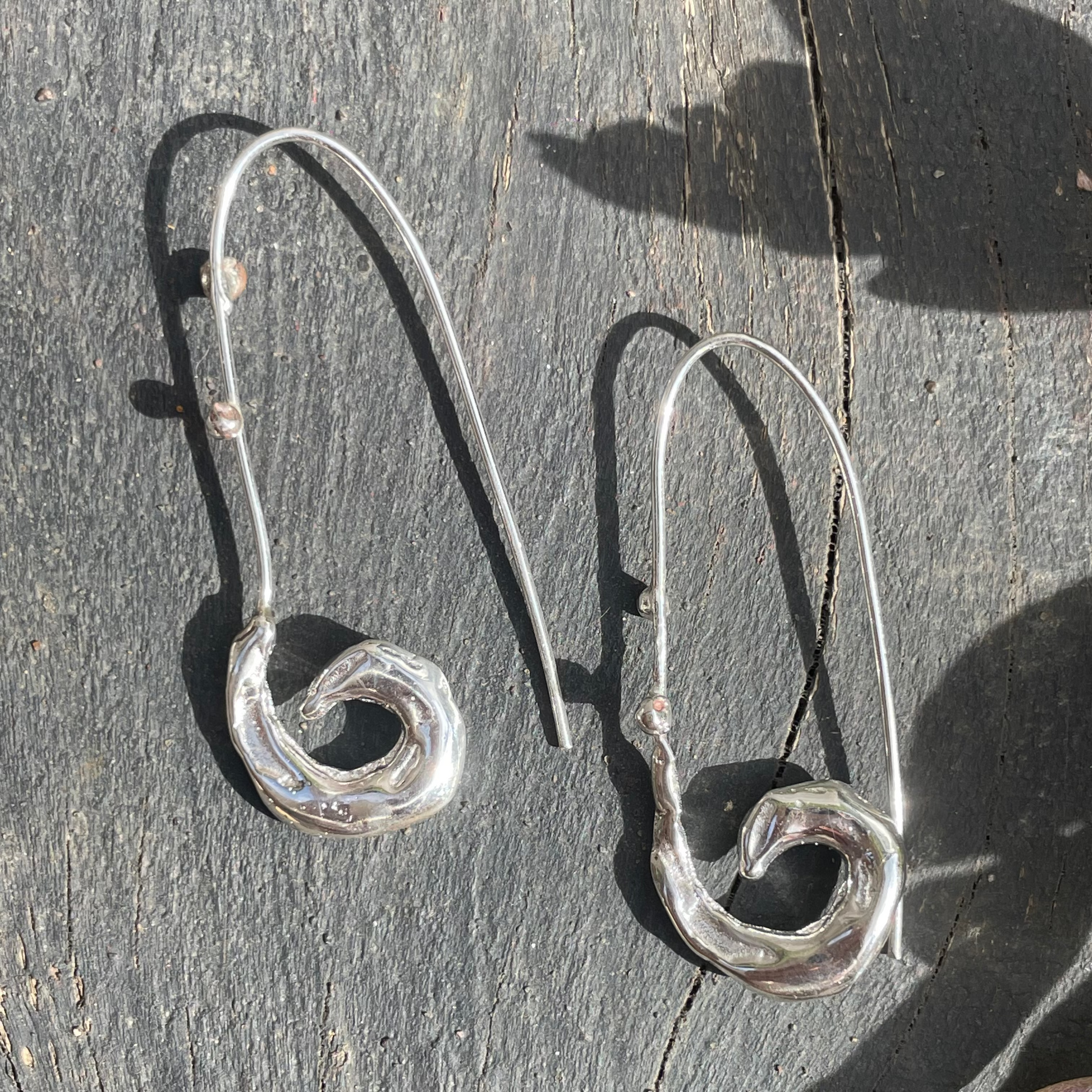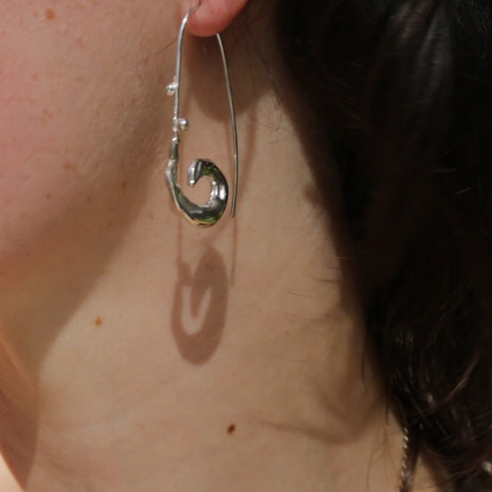 Hand-cast in 925 sterling silver, these earrings offer a graceful sculptural touch. Their soft, flowing curves create a delicate sense of movement, catching the light with every turn. A timeless pair designed to elevate your everyday with quiet elegance.