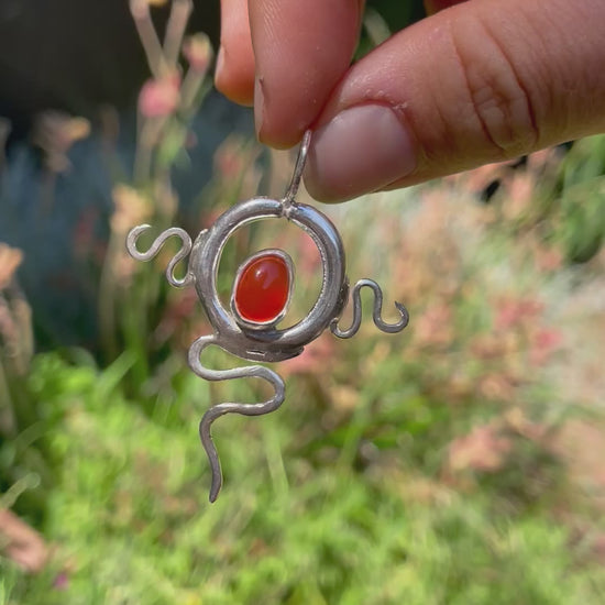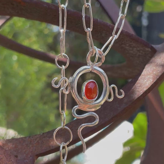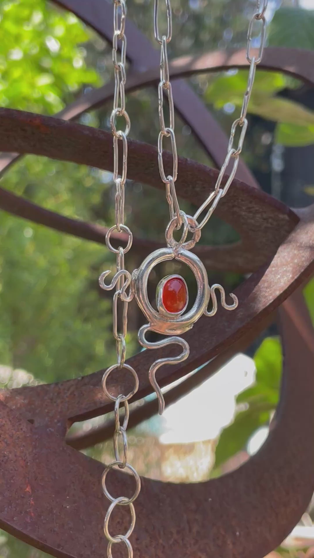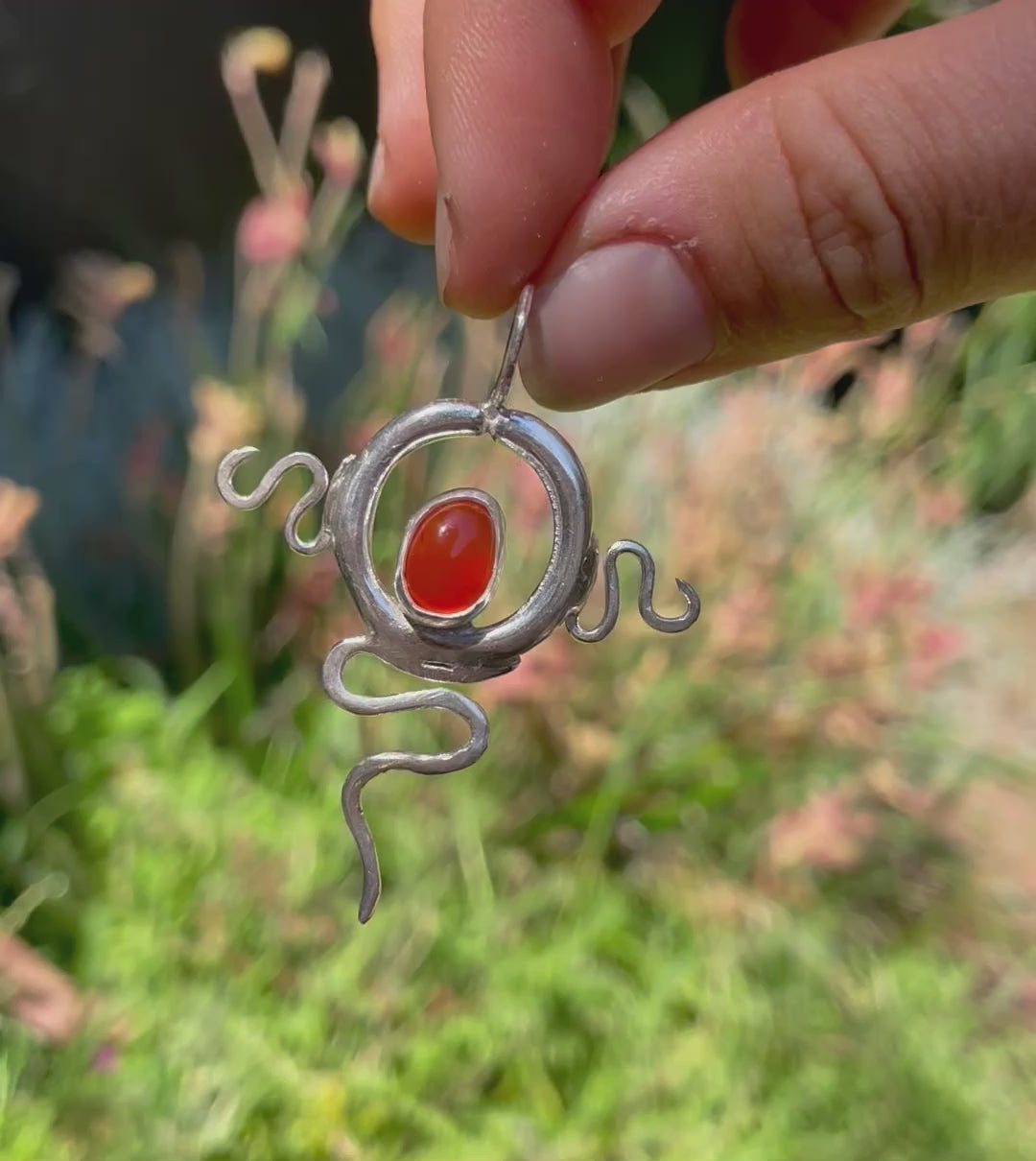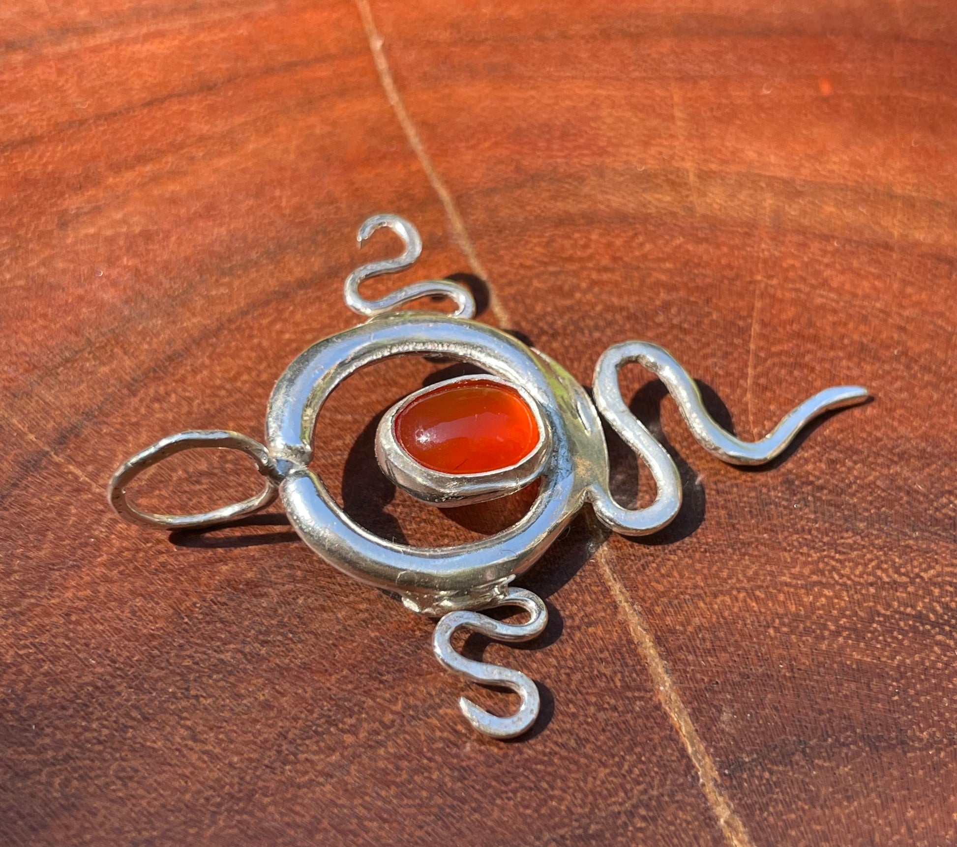 Red agate sun pendent. Handcrafted in solid sterling silver.