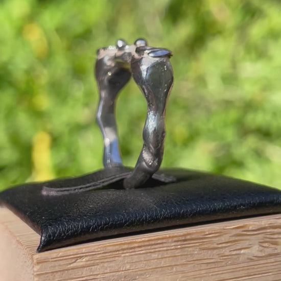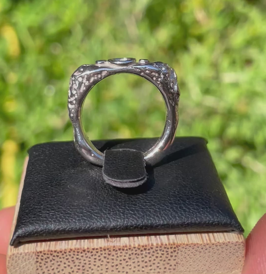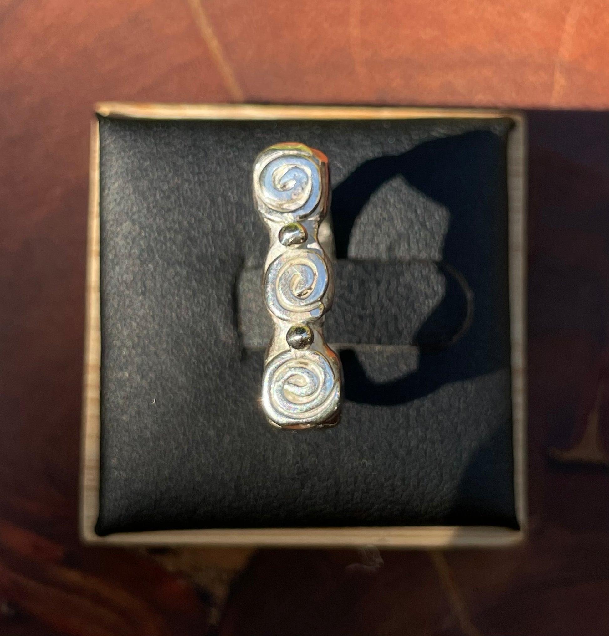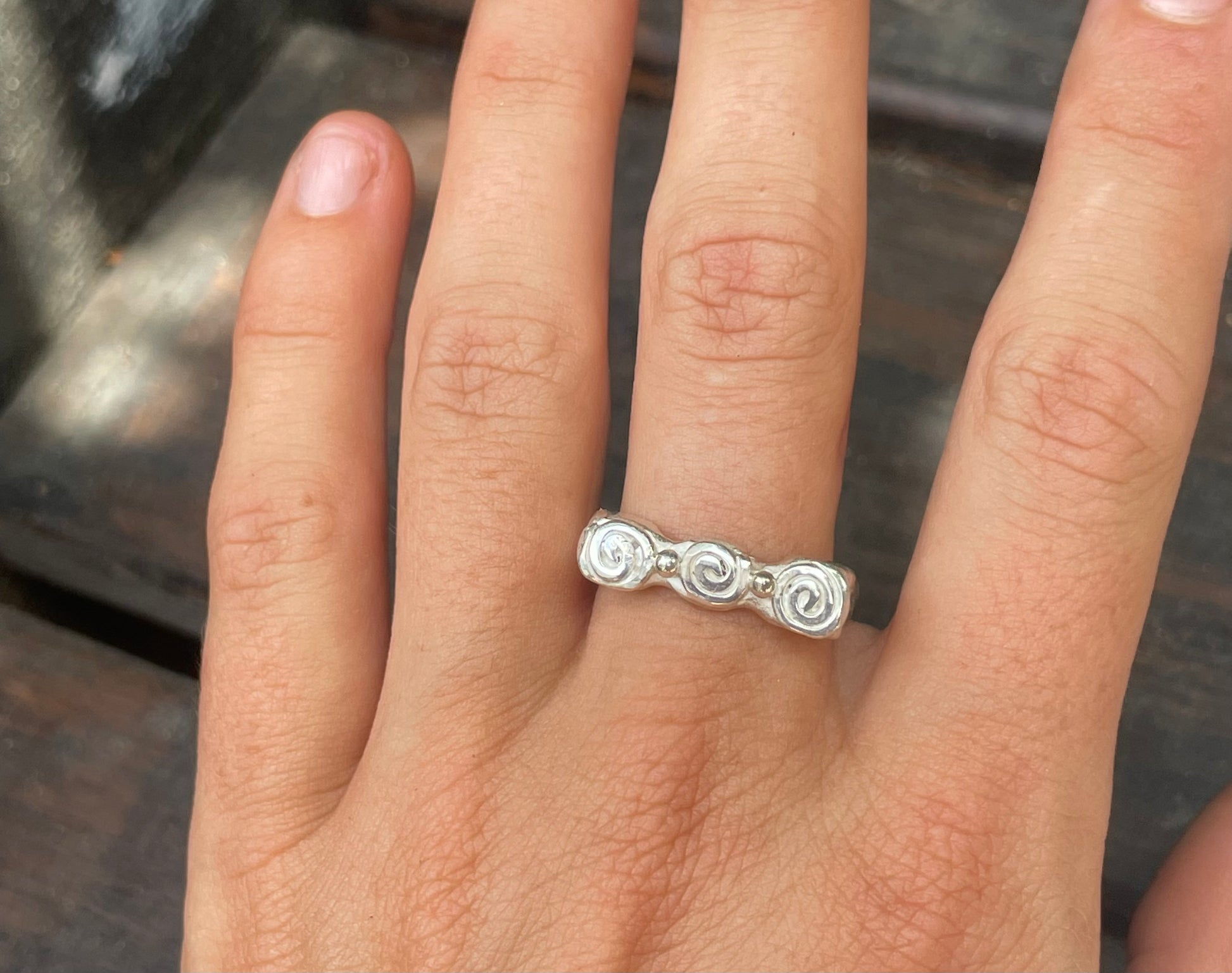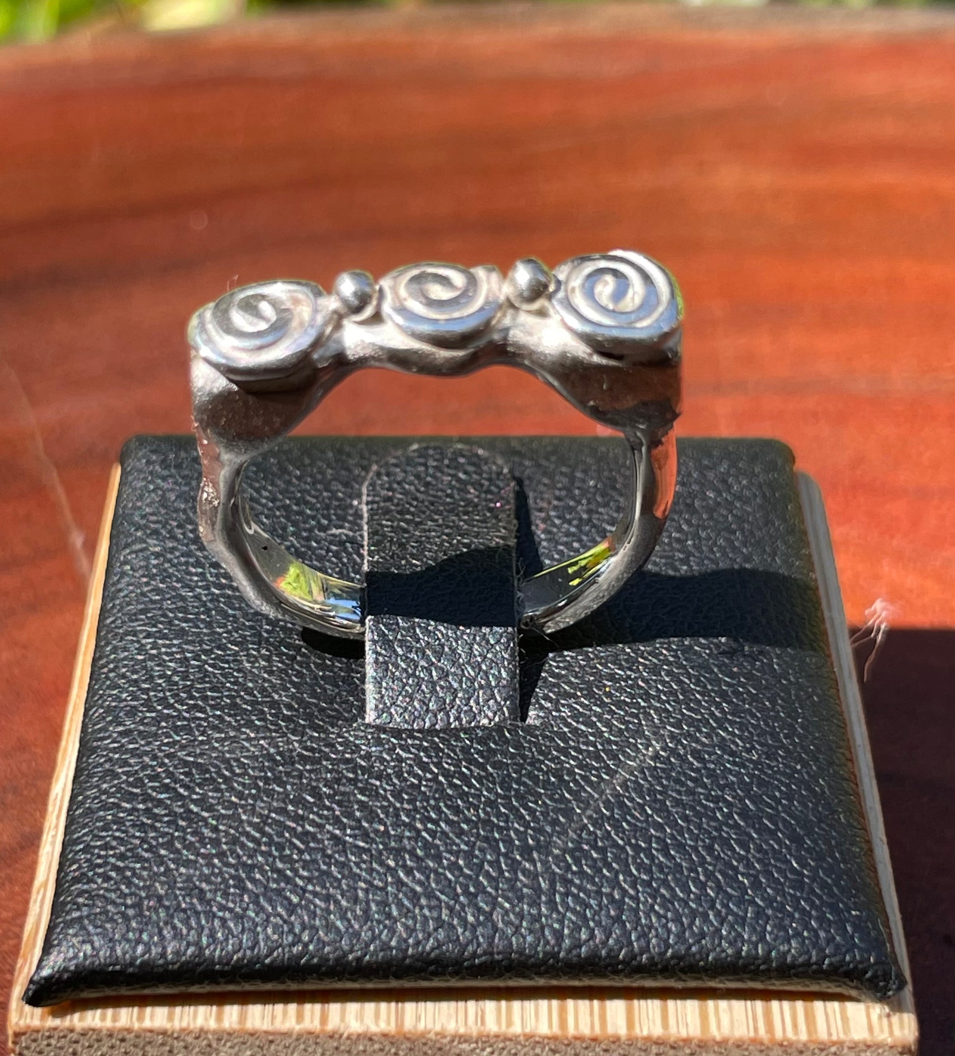 Three swirls sitting atop a funky style ring. Handcrafted in solid 925 sterling silver.