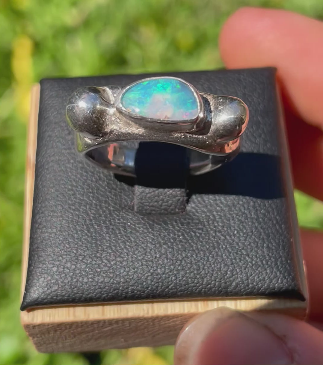 Australian Coober Pedy opal. Handcrafted in solid 925 sterling silver.